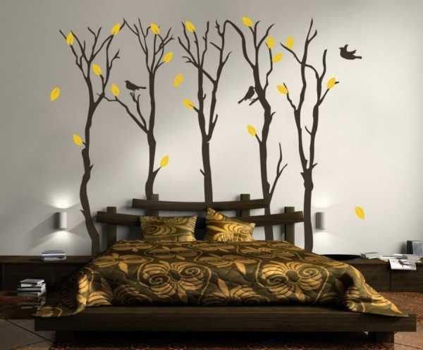 Нарисовать дерево, используя краску двух-трех цветов, сможет даже ребенок. Сделать это можно прямо на светлых обоях.