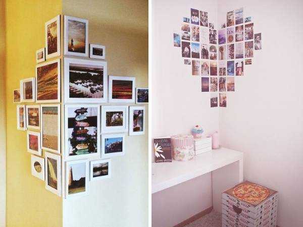 Снимки без рамок в виде сердечка на стене детской комнаты