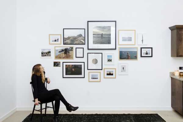 Если же вы хотите пойти сложным, но и более интересным путем, и сочетать совершенно разные рамки и фотографии, тогда помните о необходимости визуально уравновесить композицию по центру и о том, что рамки должны располагаться на примерно одинаковом расстоянии друг от друга.