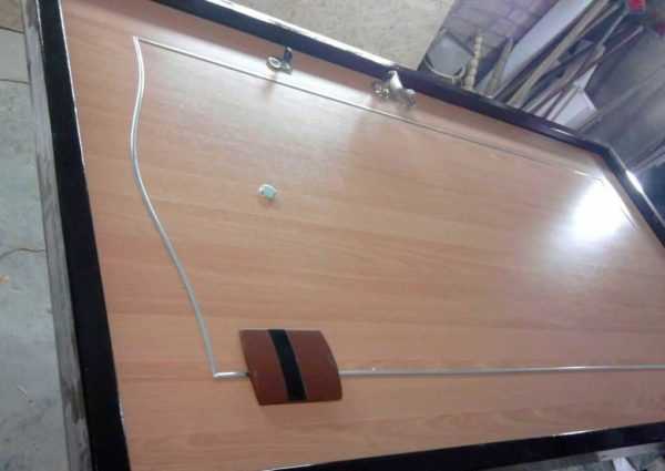 Петли (навесы) на металлическую дверь делаются следующим образом. Сначала изделие немного приподнимается над сварочным столом. Чтобы выполнить эти действия максимально быстро и комфортно, следует под коробку наложить элементы труб или профилей.