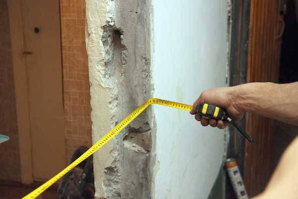 Металлическую дверь начинают изготавливать с измерения проема. Обычно эти показатели приравниваются к ширине в 80-90 мм и высоте 2000 мм. Чтобы получить более точные сведения, следует изучить торцевую часть стены. Для этого приходится прибегать к откалыванию штукатурного слоя, очищению поверхности от краски. Для этого берется стамеска и молоток.
