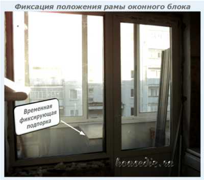 Смонтированный оконный блок зафиксировали дополнительными подпорками до момента застывания монтажной пены.