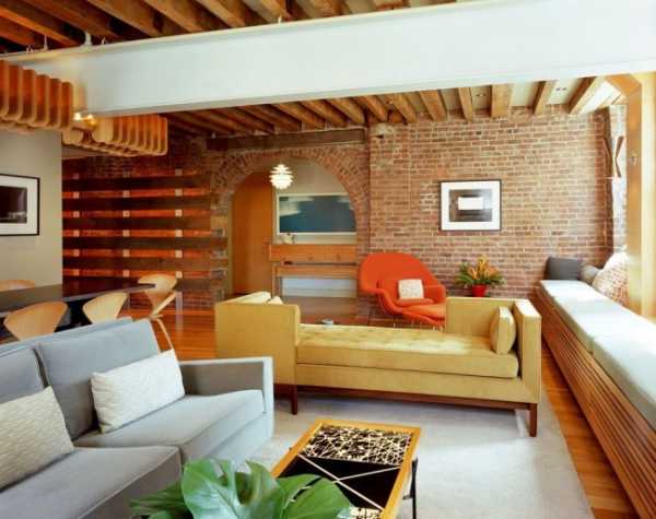 Гостиная комната с аркой в стиле лофт