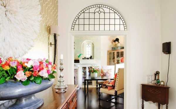 Красивая прихожая с прямоугольной аркой, застекленной вверху