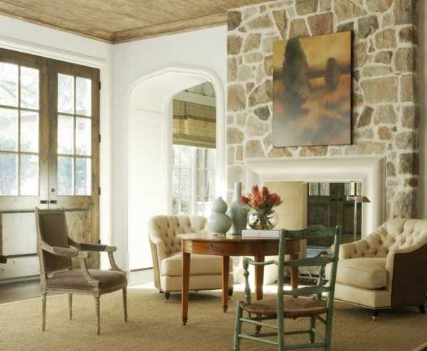 Искусственный и натуральный камень в отделке гостиной комнаты