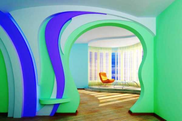 Такие арки могут иметь неровные или фигурные края, располагаться на нескольких уровнях, закручиваться от одного помещения к другому.