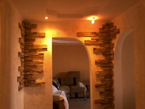 Такой способ особенно выигрышно смотрится в глубоких арках - Камень. Арка в доме из натурального или искусственного камня устанавливается лишь с помощью профессионала. Отделка завораживает взгляд, делает интерьер необычным.