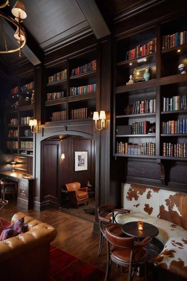 Роскошная домашняя библиотека в дереве с огромными арками