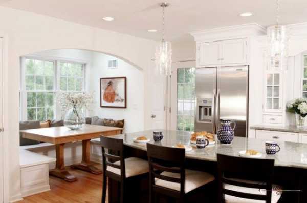 Столовая зрительно кажется больше при наличии арки вместо двери