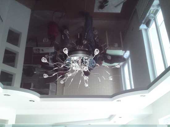 Подвесной потолок из стеклянных панелей встречается довольно редко, хотя выглядит очень эффектно