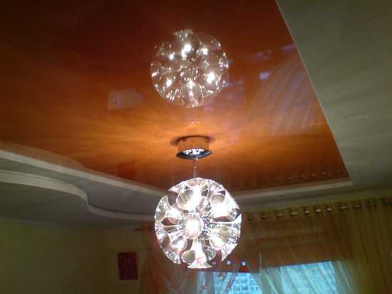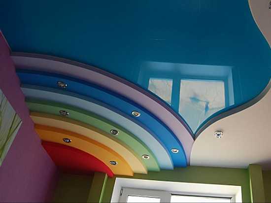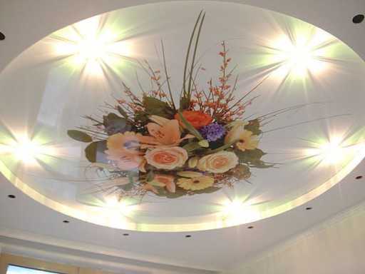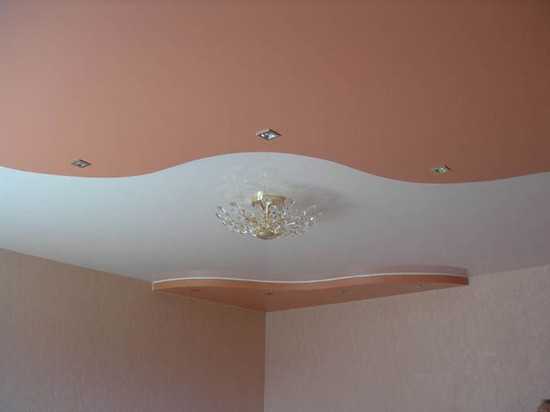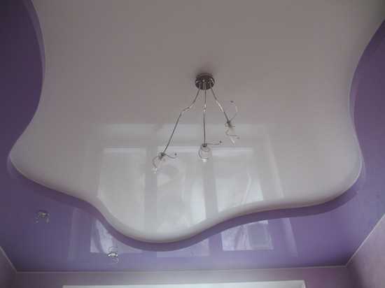 Посмотрите на фото двухуровневых потолков. Как видите, они бывают самыми разнообразными, как по цвету, так и по оформлению. Особый изыск двухуровневым потолкам придает точечное освещение, которое также позволяет разбить потолок на зоны.
