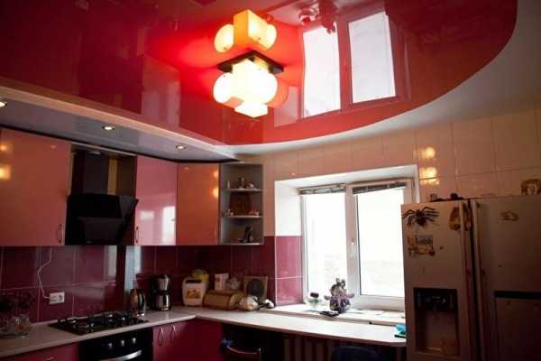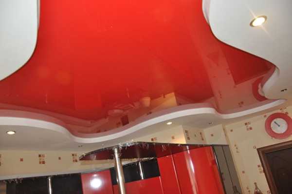 Двухуровневые натяжные потолки на кухне
