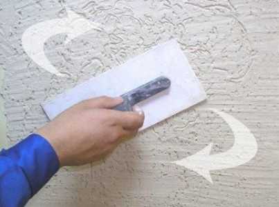 - После этого начинаем создавать фактуру при помощи терки. Для этого проведите теркой круговыми движениями по штукатурке. Сначала рисунок будет не очень красивым, но в конце эффект вас поразит.