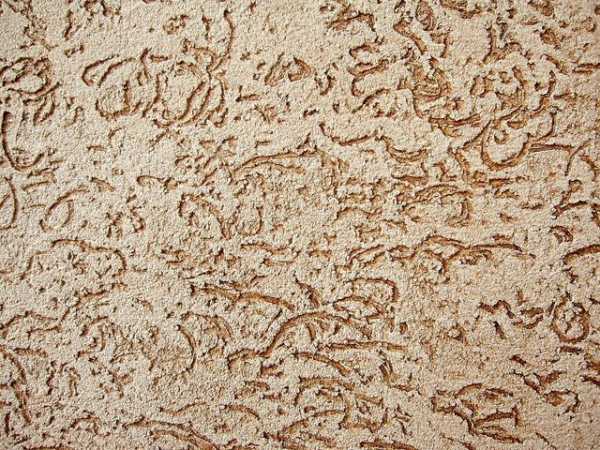 Свое название эта штукатурка получила благодаря своей фактуре. В процессе нанесения смесь затирается особым способом, в результате чего образуются небольшие канавки. Эти бороздки создают фактуру, похожую на источенную жучком древесину.