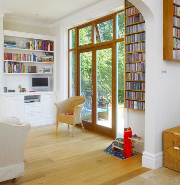 Большущее французское французское окно размещается на всю стенку и играет именно такую же роль как зеркало, другими словами визуально делает пространство шире.