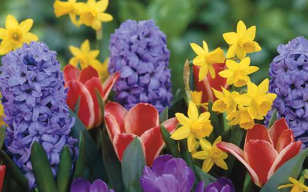 Гиацинты на клумбе (фото Надежды Абрамович, Краснодар)Ранней весной, как только сойдут снега, из земли прорастают зелёные стрелочки гиацинтов. Этот цветок с чарующим и ярко выраженным ароматом разнится всеми оттенками радуги. Соцветия в форме кисточек могут быть как обычными, так и махровыми по структуре, на цветоносе обычно располагается 20-30 бутончиков.