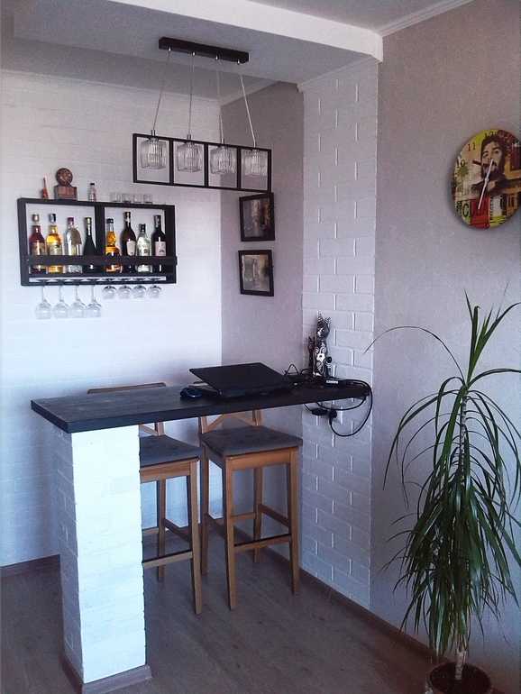 Это чуть ближе стойка. Полочку для бокалов муж сделал сам (как обычно по моей просьбе и рисунку). Про кирпичную кладку своими руками довольно подробно девушка одна здесь описала: ideas.vdolevke.ru/posts/15300/kirpichnaya-kladka-hand-made-v-kartinkah-voprosah-i-otvetah/, посмотрите, это на этом сайте, если интересно будет.