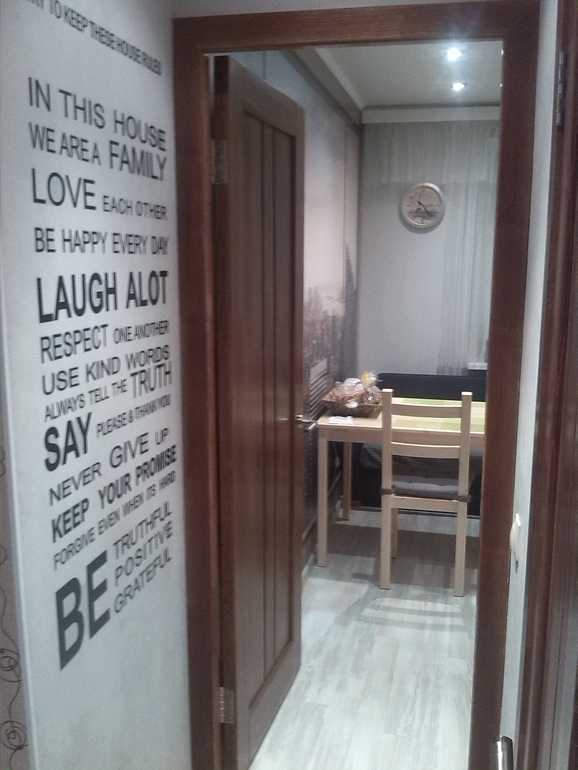 Вот эта часть коридорчика в кухню: слева наклейка с правилами нашего дома).