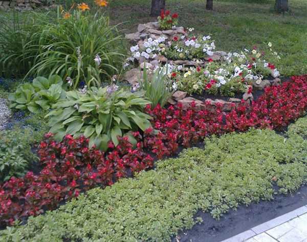Многолетние растения низкорослого типа довольно быстро растут, потому лучше всего их комбинировать с однолетними сортами, заполнив клумбу цветами различных оттенков.