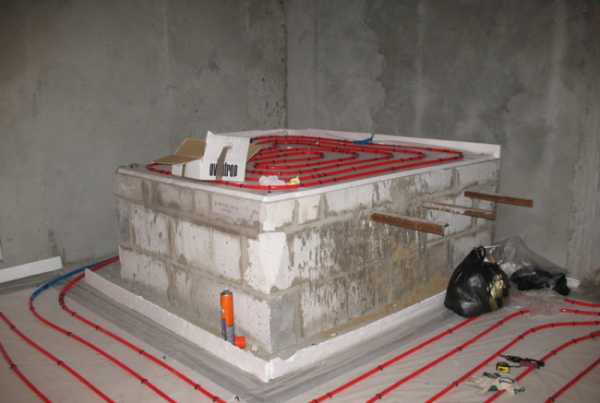 Важно!Для того чтобы тротуарная плитка не испортилась после первой же зимовки, необходимо возведение мелкозаглубленного плитного фундамента под такие сооружения. На плиты укладывается утеплитель, и только после этого можно проводить установку тротуарной плитки.