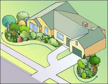 Планировка сада и огорода на небольшом участке- Начните проектирование участка от дома или площади, на которой он будет воздвигаться. С помощью бумаги или компьютерной программы сделайте план местности, нанесите на него контуры всех построек, а также пометьте точки, где уже растут деревья, с указанием размеров.
