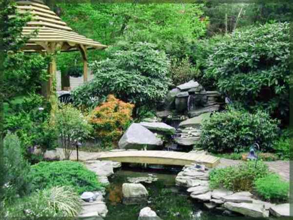 При этом размере дачного участка вполне могут поместиться как жилые постройки, так и небольшой прудик с водопадом. Землю, которую выкопали во время обустройства водоема, с легкостью можно использовать для основания альпийской горки.