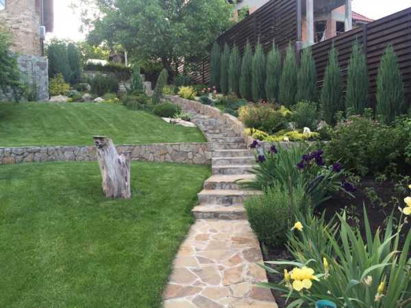 Такая разбивка наиболее подходит холмистому участку, расположенному на нескольких ярусах.