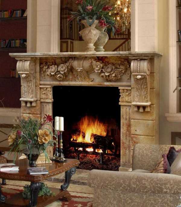 ΠΠ΅ ΡΠ΅Π΄ΠΊΠΎ Π΄ΠΈΠ·Π°ΠΉΠ½Π΅ΡΡ ΠΏΡΠΈΠΌΠ΅Π½ΡΡΡ ΠΈΡΠΊΡΡΡΡΠ²Π΅Π½Π½ΡΠ΅ ΠΊΠ°ΠΌΠΈΠ½Ρ Π΄Π»Ρ ΠΎΡΠΎΡΠΌΠ»Π΅Π½ΠΈΡ ΠΊΠΎΠΌΠ½Π°ΡΡ. Π Π½ΠΈΡ ΠΌΠΎΠ³ΡΡ Π±ΡΡΡ Π½Π°ΡΠΈΡΠΎΠ²Π°Π½Π½ΡΠ΅ ΠΌΠ΅Π»ΠΎΠΌ ΠΏΠ»Π°ΠΌΡ ΠΈΠ»ΠΈ Π»Π΅ΠΆΠ°ΡΡ Π΄Π΅ΠΊΠΎΡΠ°ΡΠΈΠ²Π½ΡΠ΅ Π΄ΡΠΎΠ²Π°.