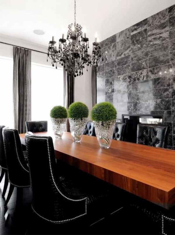 И конечно же камень отлично сочетается с натуральным деревом. Если выбран камень темных тонов, то его лучше сочетать со светлой мебелью.