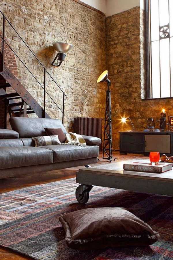 Если комната оформлена в стиле минимализм, то камень выполняет функцию зонирования, а не декора, и должен быть глянцевым и однотонным (песчаник, сланец бежевого и серого цвета). Для классического стиля подойдут гладкие и фактурные породы гранита и мрамора. В стиле хай-тек каменная выбеленная стена подчеркнет красоту металлика и стекла, а для деревенского стиля подойдет имитация блочной кирпичной кладки. Стиль лофт не вообразим без кирпичной стены или коричневого плитняка.