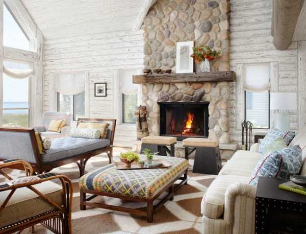 Интересным решением является использование грубого крупного камня наряду с деревянными элементами.