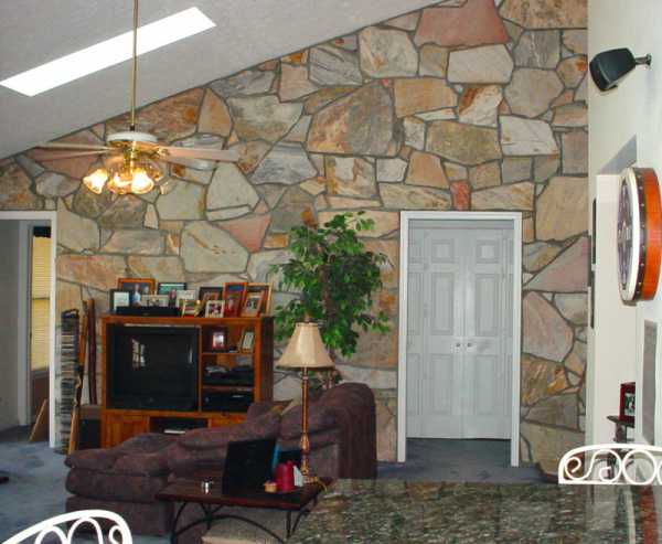 Перед облицовкой стена должна быть ровной и чистой, без штукатурки и краски. Цвет камня разных партий нужно сравнить и проверить на целостность. Дикий или искусственный камень в интерьере сочетается со всеми материалами.