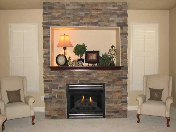 Ниши, выложенные искусственным камнем, с расположенными внутри них полочками, либо же отдельно висящие полочки на фоне каменной стены станут отличным решением для оформления спальни, прихожей или гостиной. Хорошо освещенные, подобные детали интерьера могут стать местом для хранения предметов Вашей гордости, например, каких-то наград, дипломов или сертификатов. В ином случае здесь можно разместить обычные сувениры, цветочки или, на худой конец, коллекцию дисков с кинофильмами: