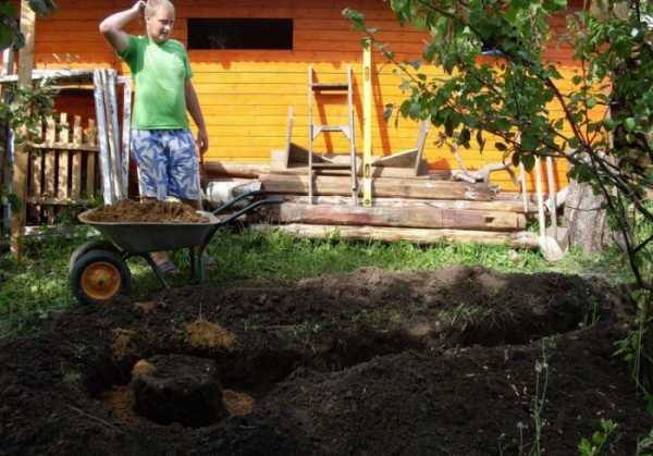 Размечаем участок под фундамент коптильни и выкапываем почву на глубину примерно 30 см.