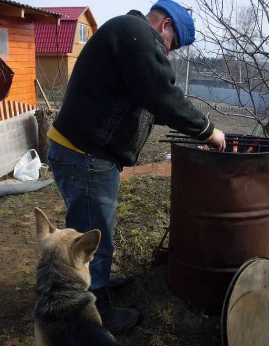 Внизу, где проделано отверстие топки, разводим костер. Время приготовления зависит от продукта. После первого появления дыма рыбу следует выдержать около двадцати минут, а мясу потребуется больше времени – примерно сорок минут.