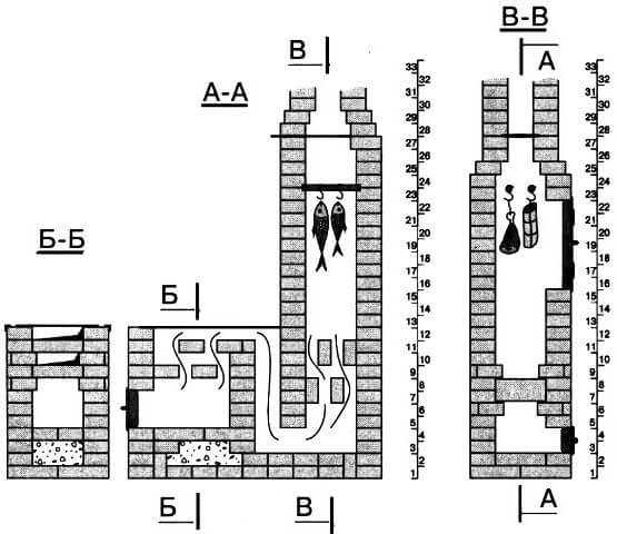 Устройство коптильни из кирпича включает в себя следующие элементы: