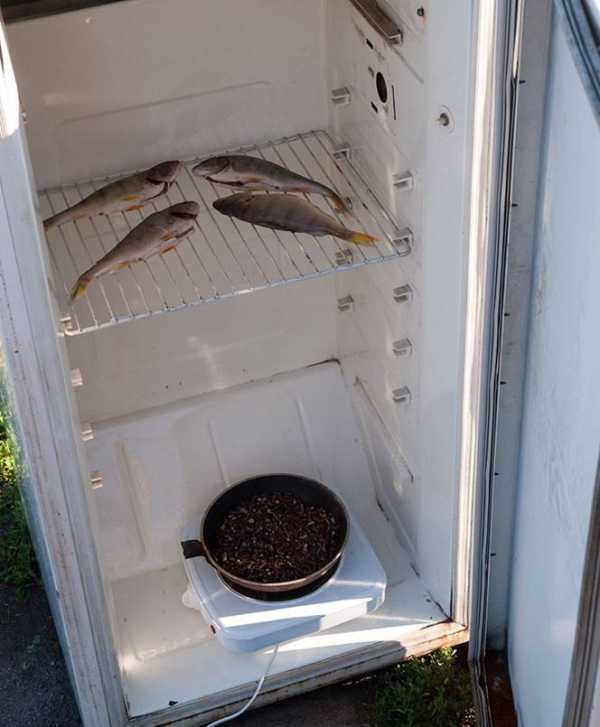 Нередко люди интересуются, как сделать коптильню своими руками из старых, отслуживших вещей. Отлично для такой цели подходит холодильник. Чтобы его превратить в коптильню, необходимо удалить все внутренние элементы, оставив только металлический корпус. Сверху проделывают отверстие для отвода излишков дыма, а с внутренней стороны закрепляют шесть штук уголков, которые располагают на разной высоте попарно.