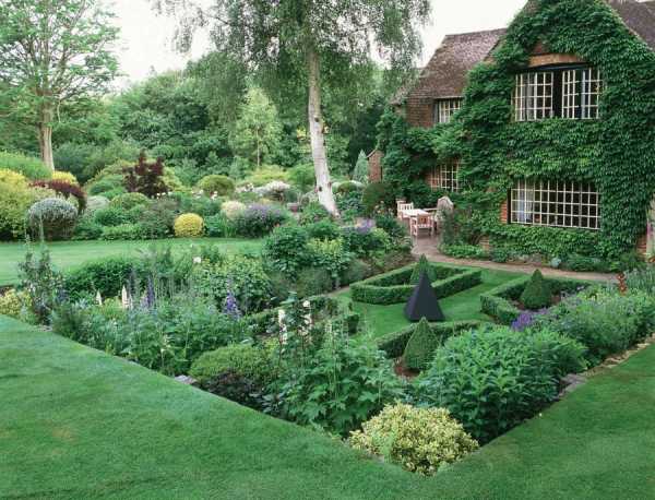 Условно разделите участок на несколько зон, их можно ограничить при помощи живых изгородей и декоративных заборчиков. Скульптуры в саду должны вписываться в стиль оформления участка.