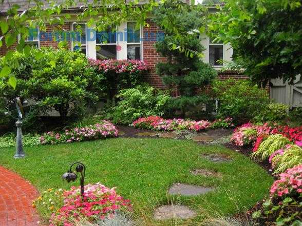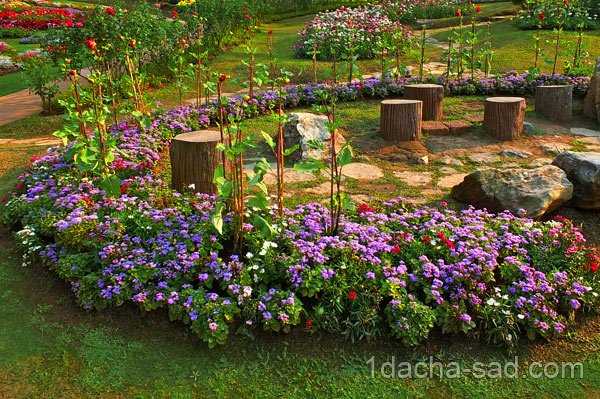 Кровать засеяная цветами-многолетникамиЦветник и дерево