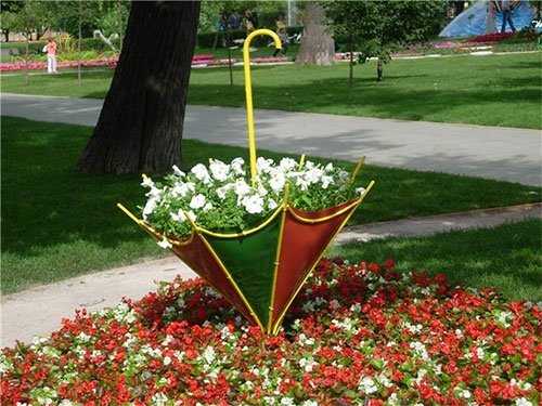 Не поверите, но даже этот предмет можно достойно использовать для оформления грядок. Обычный старый ненужный зонтик превратиться в современную декорацию, которая, несомненно, привлечёт к себе внимание.