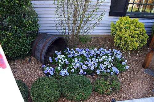 Цветник из дерева и лозыДля оформления нам потребуется сруб из дерева, который можно обыграть как небольшую цветочную избушку. Дополнительно можно воспользоваться вариантом штахета из деревянных палок или лозы, которые мы сплетём воедино, создав образ корзины. Также вы можете сделать красивую клумбу из пня на вашей даче.