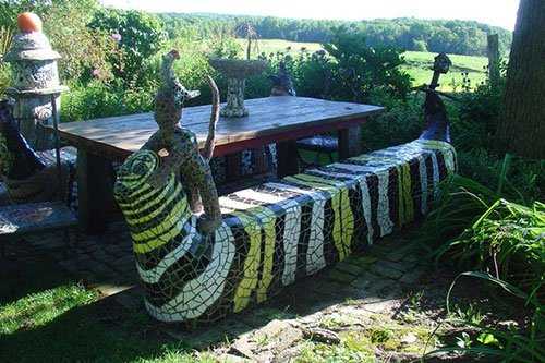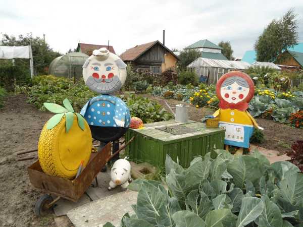 Если у вас большая семья, то, скорее всего, вы уже выделили место на приусадебном участке для организации детской площадке. Не стоит рассредоточивать скульптуры и фигурки по всей площади участка – лучше расположить их группами. Изготавливать поделки своими руками можно вместе с детьми, пусть они будут простенькими, зато сделанными своими руками.