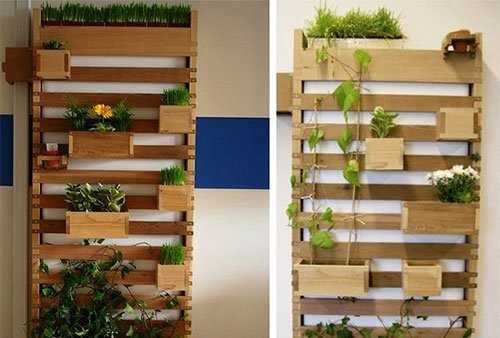 Даже старые поддоны и ящики можно превратить в нечто необычное, сделав внутри домика «шведскую стенку» с цветами. Смотрится очень оригинально, так что поводов для гордости своей дачи у вас будет масса.
