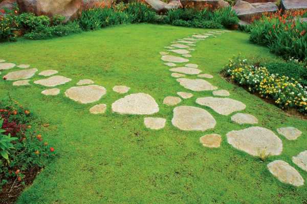 Обложите края газона природными камнями и пофантазируйте над рисунками периметра – вот вы и создали газон в форме цветка, головы животного или в форме сердца.