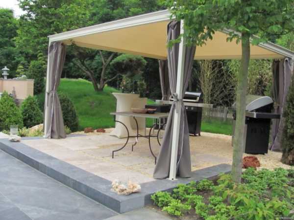 Красивая идея — использование плетистых роз в оформлении украшения беседки на даче. Розы можно пустить по шпалере, со временем растение обовьет большую поверхность беседки и придаст ей изысканность и очарование.