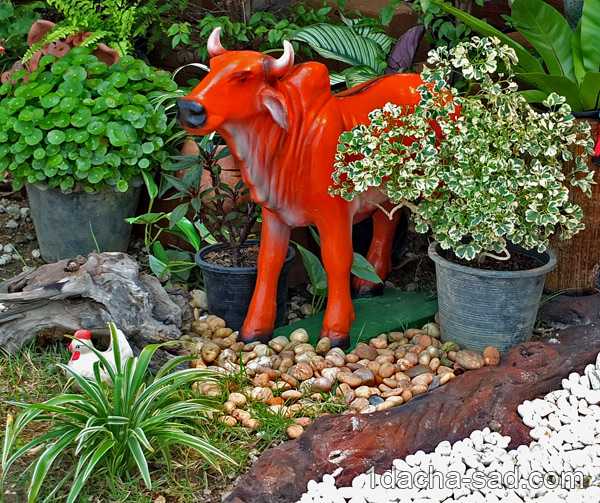 Очень красиво смотрятся садовые фигурки, которые будут украшать дачный участок. Они могут быть выполнены из гипса, полимерной глины, монтажной пены, остатков стройматериала и т.д.