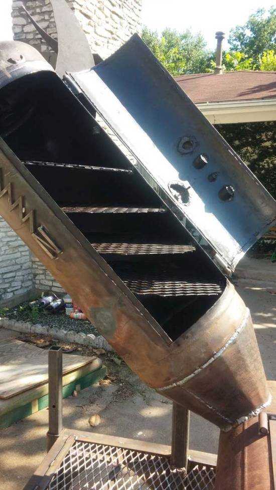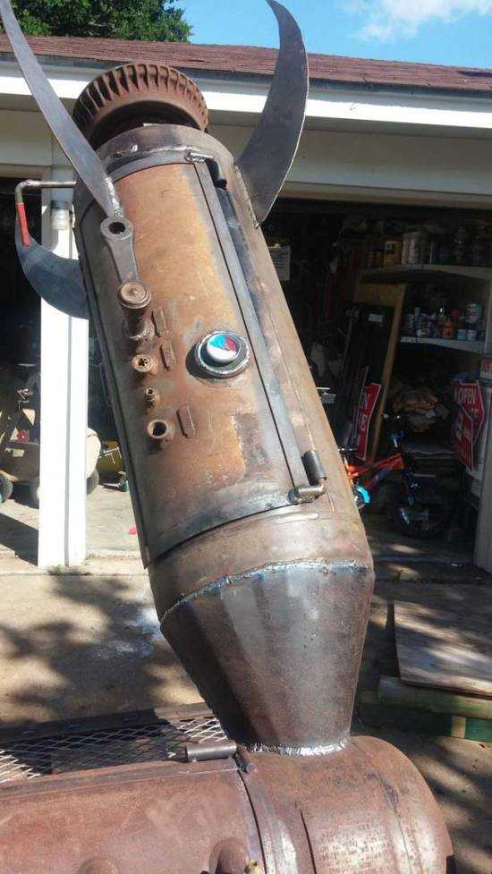 Один умелец создал в своем гараже вот такой необычный мангал в виде ракеты.