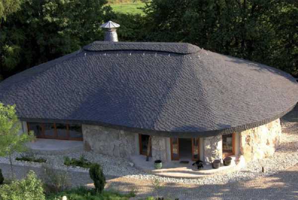 Нетривиальная крыша в форме шляпки гриба — пример использования колотой сланцевой черепицы для кровель самой оригинальной конструкции.