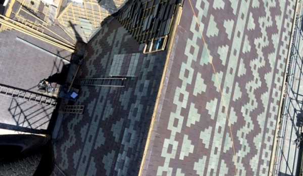 Из разноцветного или различного по форме сланца нередко выкладывают выразительные картины на крыше — сюжетные или в виде узора. В Англии можно встретить сланцевые крыши с большими цифрами из контрастной плитки — это год постройки здания.