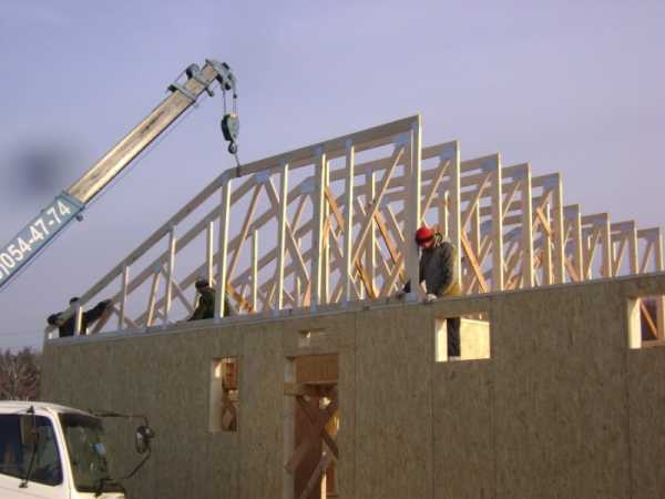 Если дом строится на основе столбчатых опор, то монтируются наслонные стропила, которые торцами опираются на наружные стены. Монтаж этого вида опор целесообразно выполнять в том случае, если расстояние между опорами составляет не больше 6 метров. Для достижения прочности и надежности соединения используются дополнительные саморезы и болты. А для усиления прочности накосных стропил иногда используется шпренгель.